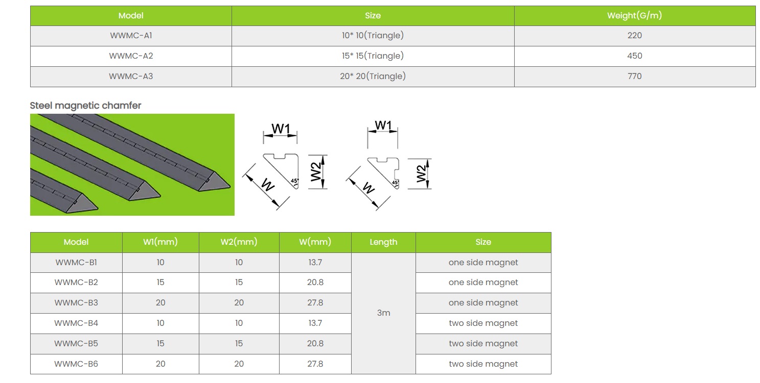 ยางลบมุมแม่เหล็ก แถบจะเหมาะสมเฉพาะในกรณีที่หน้าแบบหล่อเป็นแบบเฟอร์โรแมกเนติก ซึ่งโดยทั่วไปคือเหล็กโครงสร้างหรือเหล็ก จะไม่ยึดติดกับรูปทรงอะลูมิเนียม รูปทรงไม้ หรือแผง FRP (พลาสติกเสริมด้วยไฟเบอร์) หากระบบแบบหล่อของคุณเป็นอะลูมิเนียมหรือแบบไม้ แถบลบมุม PVC หรืออะลูมิเนียมแบบแข็งที่ยึดติดด้วยกลไกถือเป็นตัวเลือกที่เหมาะสม หากการดำเนินงานของคุณใช้โต๊ะแบบเหล็ก (ตามมาตรฐานในโรงงานสำเร็จรูปของยุโรป) ยางแม่เหล็กมักจะเป็นตัวเลือกที่ดีกว่าเสมอไป