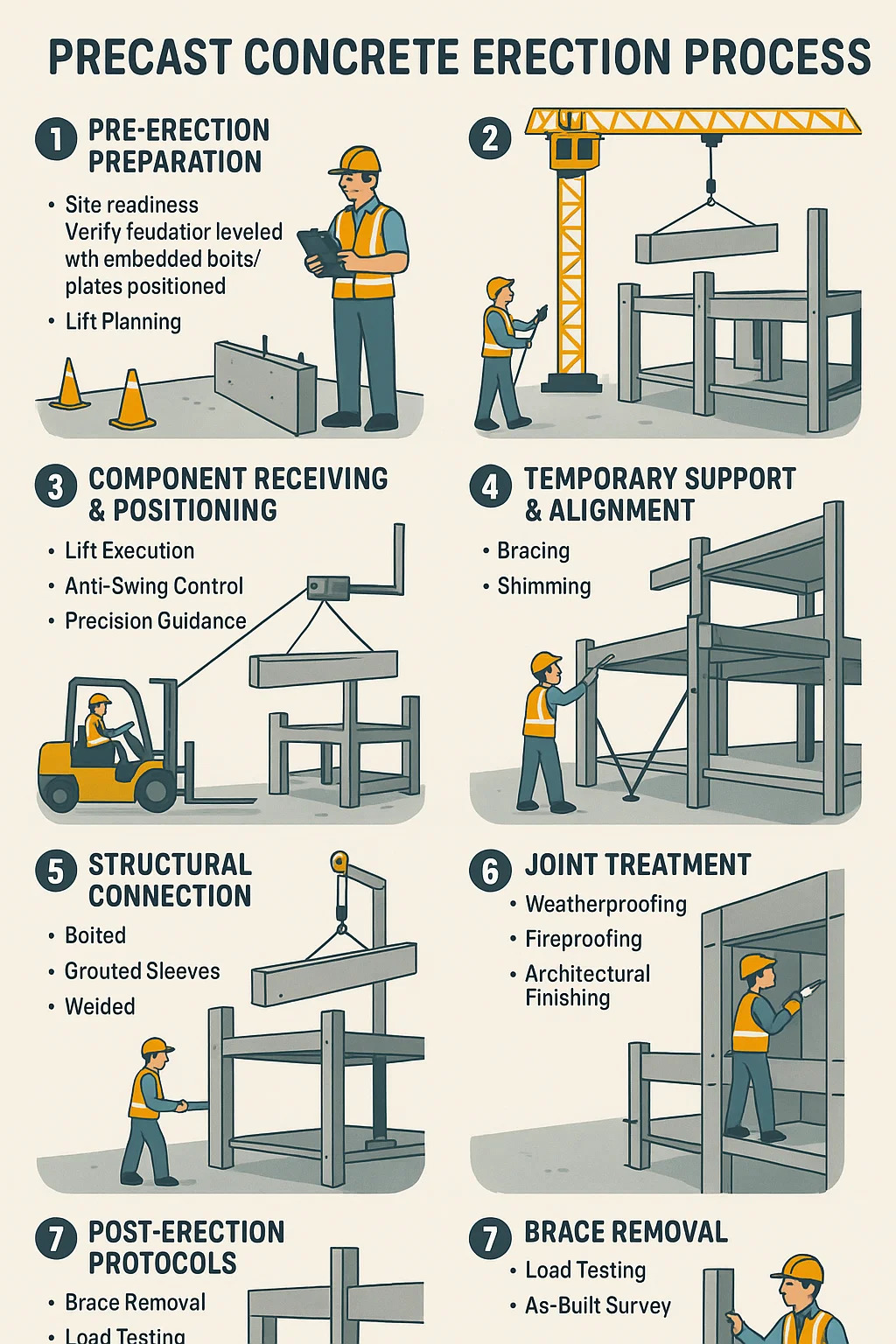 การวางแผนลิฟต์: การติดตั้งส่วนประกอบตามลำดับ (เช่น คอลัมน์ → คาน → แผ่นพื้น)