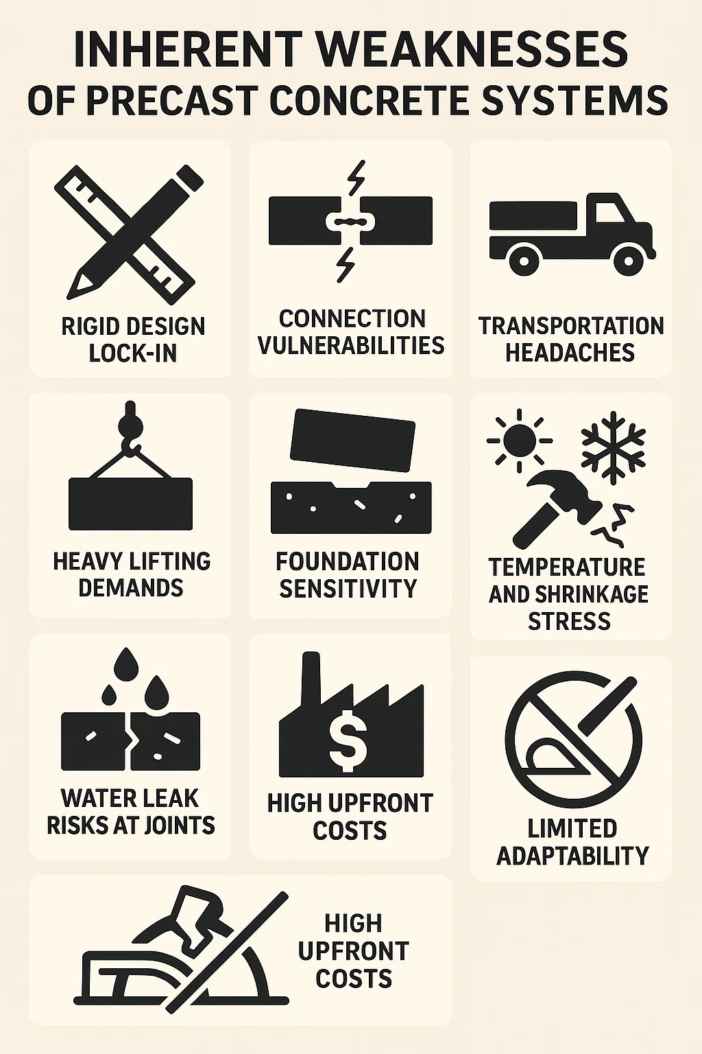 นี่คือจุดอ่อนโดยธรรมชาติของ ระบบคอนกรีตสำเร็จรูป : :